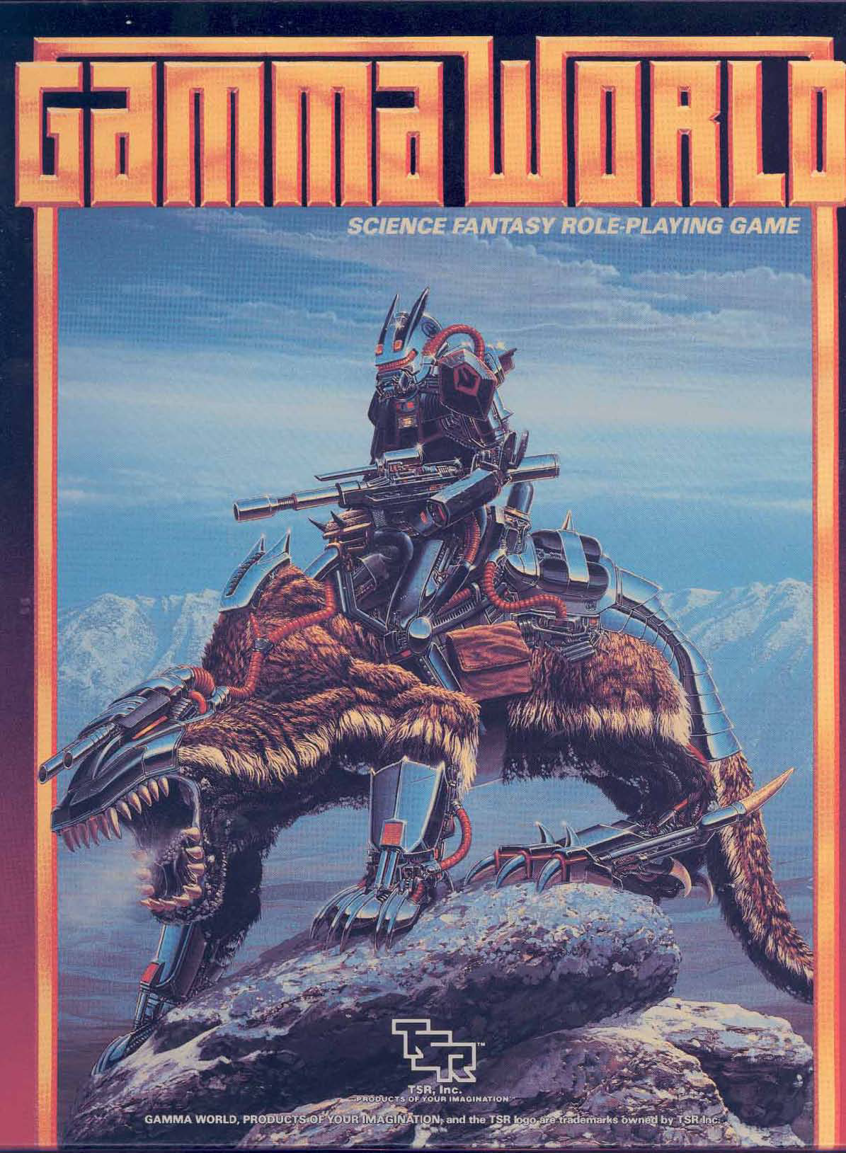 Gamma World 3e was my first roleplaying game and still has the best cover art of all time – look at that fucking cyborg otter and his power armor bunny sidekick, whom he keeps around only for his thumbs. It stays with me to this day – Glow in the Dark is my love letter to this game and how “my” Gamma World would look.