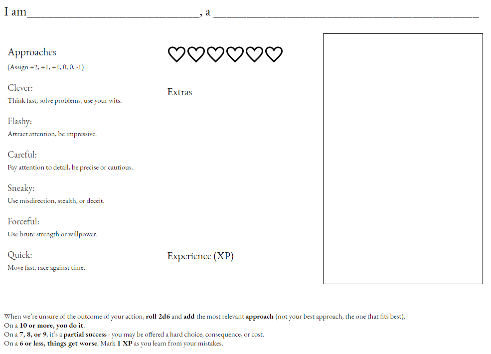 I didn’t even have hearts/health on the first iteration of the sheet. I didn’t want death to be a consequence in the kids’ first game, but they managed anyway when one girl playing a teleporting cloud figured out she could telefrag the evil dragon queen. “You’ll both die if you do this, are you sure?” She was, and was adamant that nobody make a life potion or travel to the land of the dead or anything like that. She totally understood heroic sacrifice in a way that went over some of the older kids’ heads.